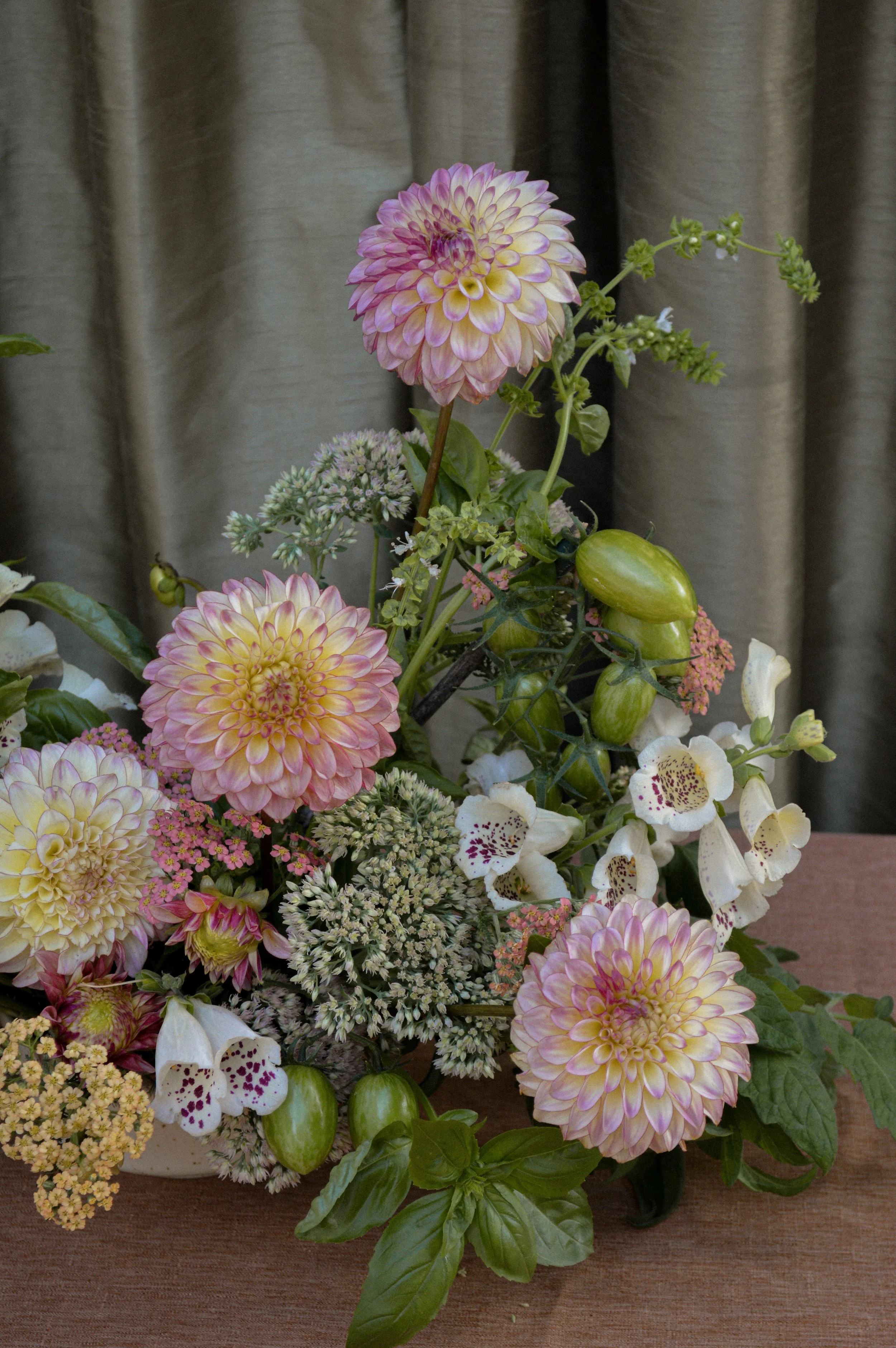 At Freckle Floral, every design begins with a conversation — about the season, the setting, and the feeling you want to create. Our work is rooted in a deep appreciation for nature’s rhythm and an intuitive, hands-on approach to floral design. No two arrangements are ever the same; each one is shaped by what’s growing, what’s local, and what inspires us in the moment.
