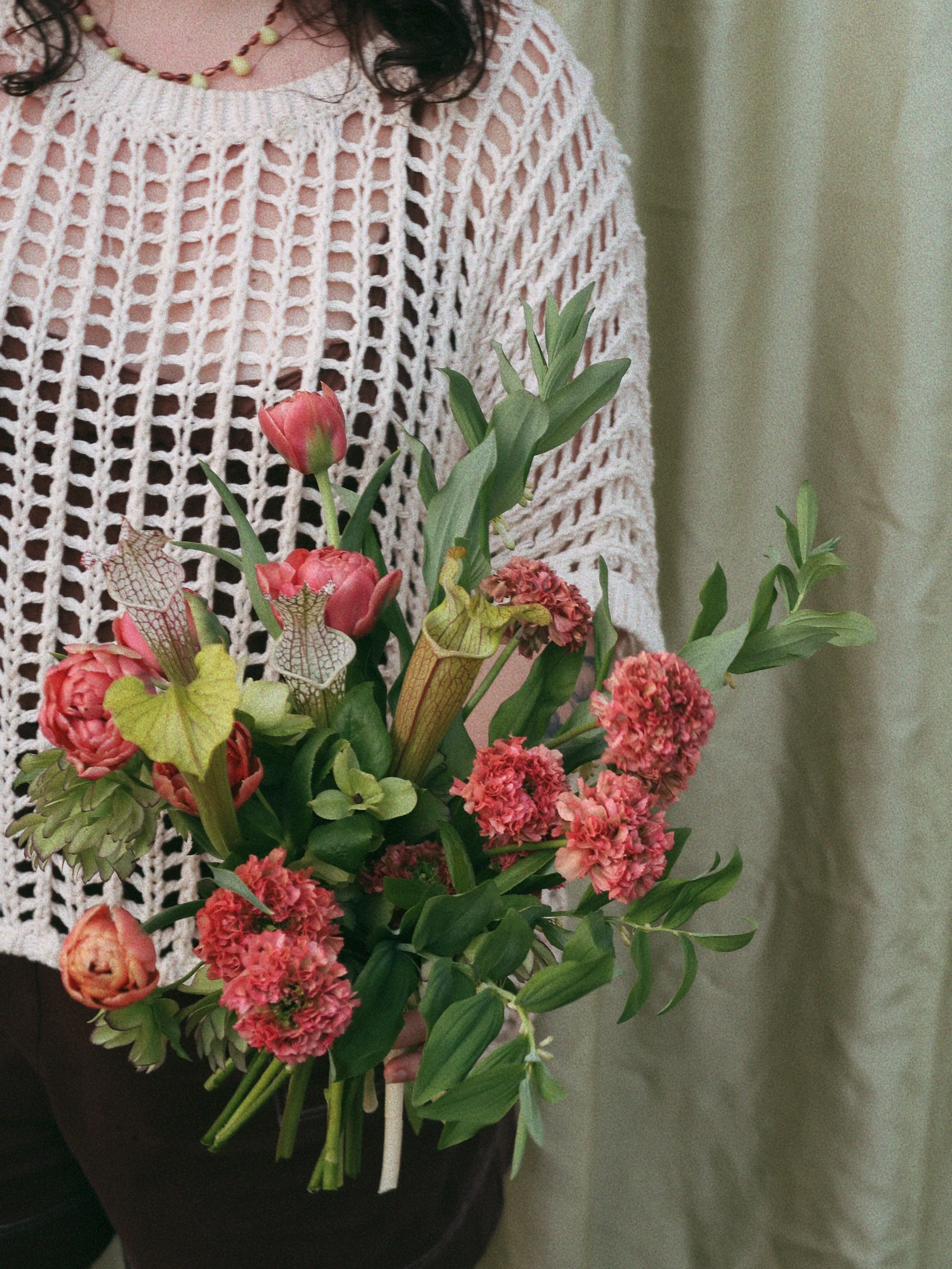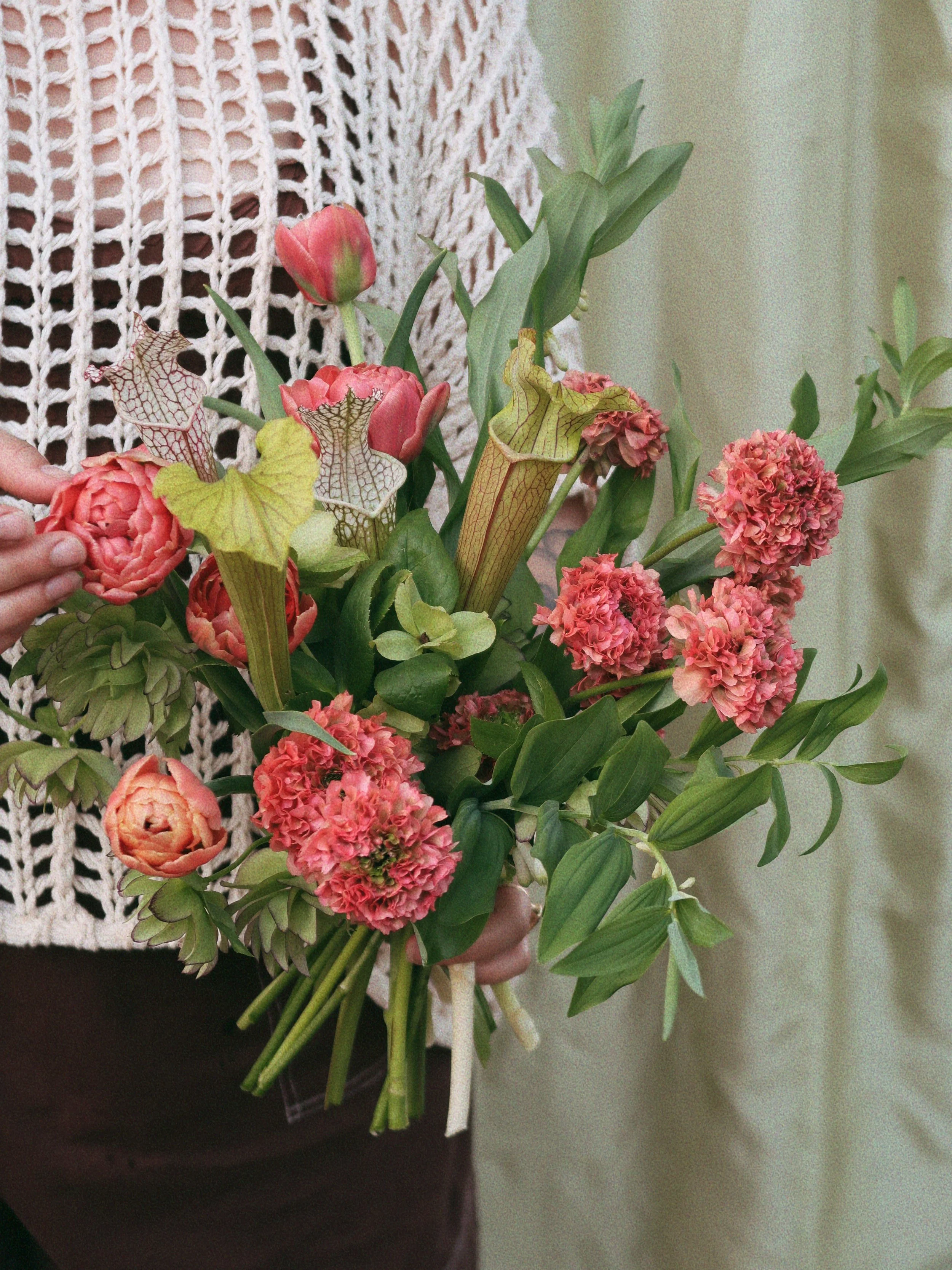 Whether you’re drawn to lush, natural arrangements, textured garden-style compositions, or something wild and sculptural, my goal is to create flowers that feel alive — grounded in place, guided by touch, and reflective of your story.